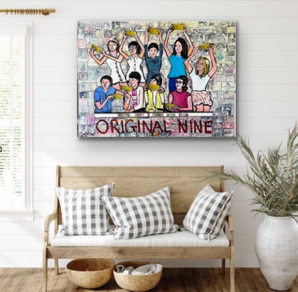 Some of your favorite sports stars, or GOATS. These are all cut up magazines and stuff with a sports stars painted over top, on canvas.